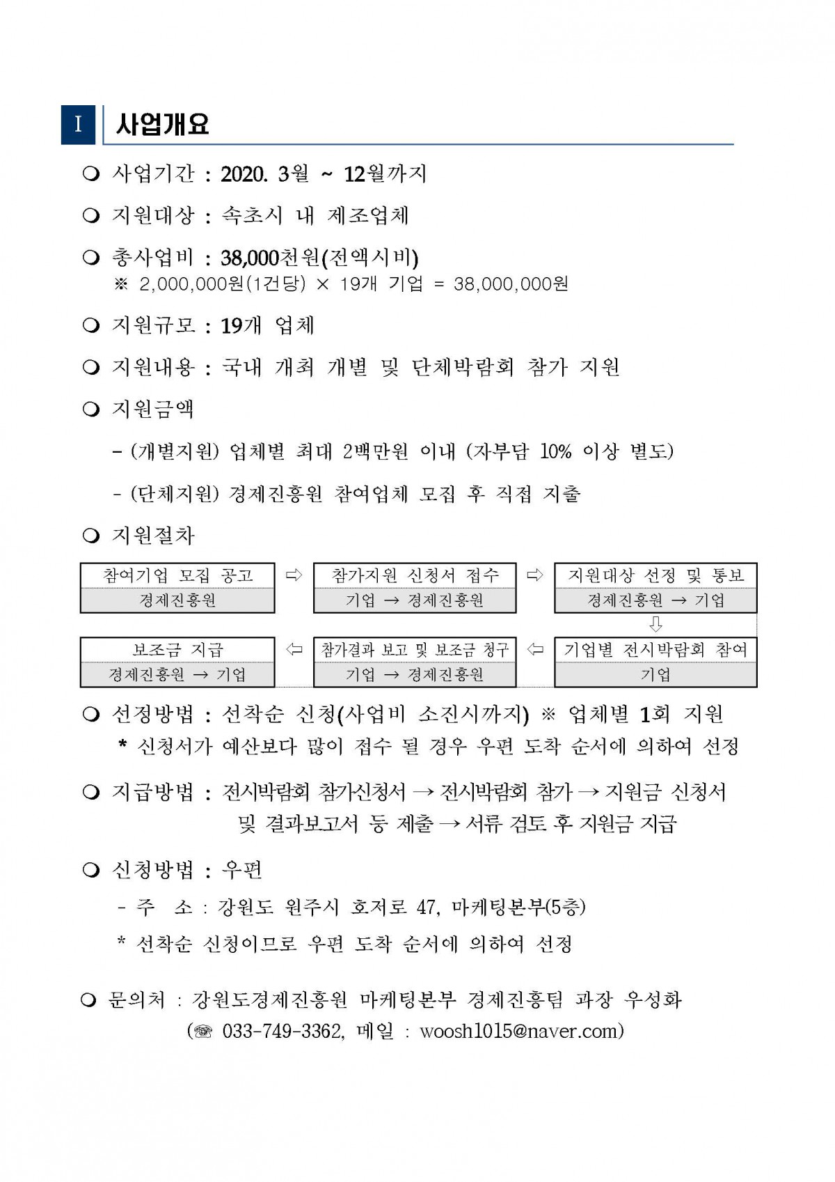 붙임 1. 2020 속초시 전시박람회 참가 지원사업 참여기업 모집 공고.hwp